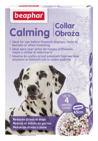 Obecne w obroży wyciągi z lawendy i waleriany wpłynął na psa nie tylko wyciszająco, ale również pozwolą mu się odprężyć. Beaphar Calming Collar to produkt działający do 4 tygodni, którego wpływ na psa można zaobserwować już godzinę po zastosowaniu. Sprawdzi się doskonale podczas częstych podróży oraz w sezonie karnawałowym obfitym w wystrzały, czy w momencie pojawienia się nowego domownika. Obroży nie należy stosować u suk ciężarnych lub karmiących, u szczeniąt poniżej 12 tygodnia życia i w przypadku pojawienia się na ran i zmian skórnych. W przypadku zamoczenia obroży, jej działanie wciąż jest skuteczne po wyschnięciu, jednak w przypadku kąpania psa z użyciem szamponu należy zdjąć ją i założyć ponownie po wyschnięciu psa.
