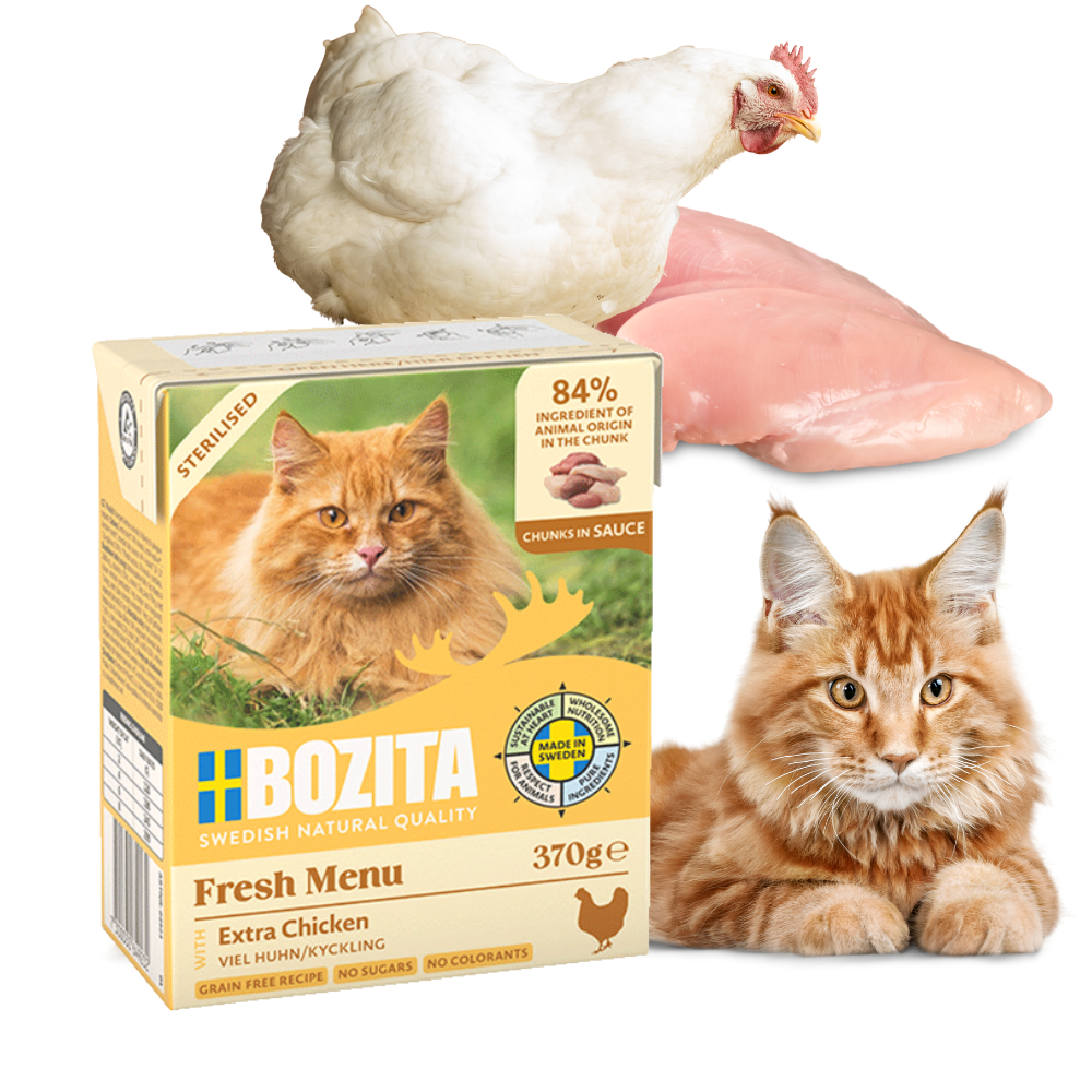 - Kompletna mokra karma Bozita dla kotów sterylizowanych, stworzona z wysokiej jakości składników i aż 84 % pochodzenia zwierzęcego, bez zbóż, cukru i sztucznych barwników.