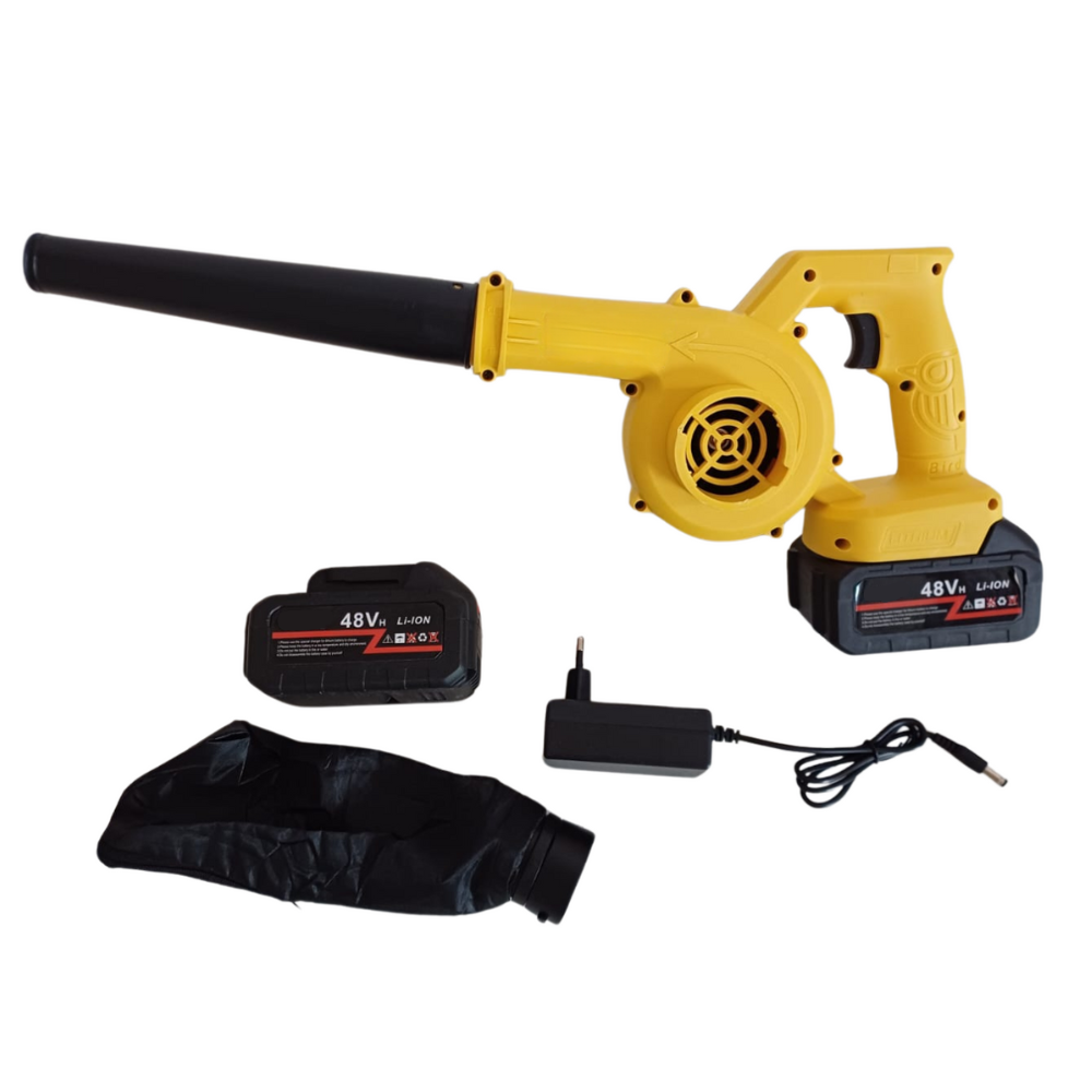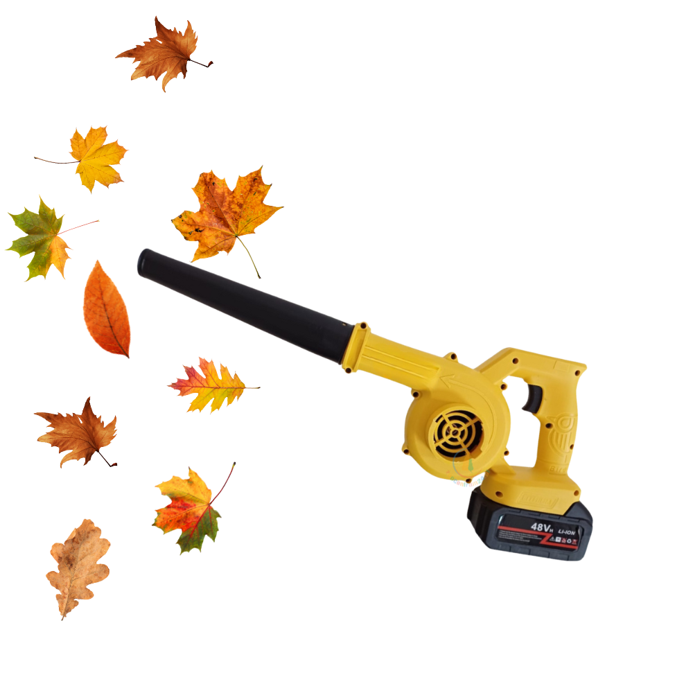- Dmuchawa do liści wyposażona w dwa akumulatory 48 V z wydajnym silnikiem.