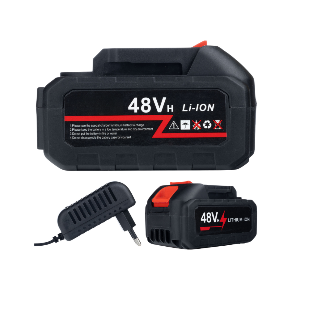 - Podwójne Akumulatory 48 V: Dzięki dwóm wytrzymałym akumulatorom litowo-jonowym 48 V zapewniono dłuższy czas pracy i zwiększoną moc. Możliwość ładowania jednego akumulatora podczas korzystania z drugiego gwarantuje nieprzerwaną pracę.