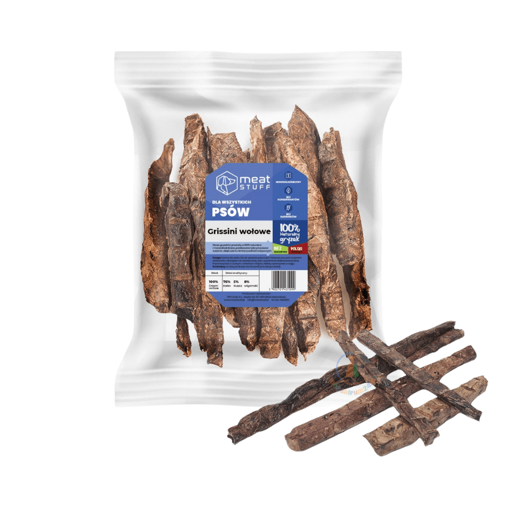 Każdy, kto choć raz miał przyjemność opiekowania się psem, wie, że nie ma lepszych przysmaków niż te naturalne. Są one nie tylko gwarancją, że do żołądka naszego pupila nie trafia nic szkodliwego, ale także charakteryzują się niezwykłą smakowitością, obok której żaden psiak nie przejdzie obojętnie. Wśród naturalnych gryzaków można znaleźć produkty wędzone oraz produkty suszone, przysmaki miękkie oraz twardsze, dla wytrwałych. Wśród dostępnych na rynku zoologicznym opcji można się pogubić, ale to, czym powinniśmy się kierować, jest przede wszystkim skład. Firma Meat Stuff w swojej gamie produktów posiada niezwykle szeroki wybór funkcjonalnych przysmaków, w tym grissini wołowe, czyli nic innego jak płuca w formie miękkich paluszków mierzących od 10 do 15 centymetrów. Zalecane są szczególnie dla psów z wrażliwym układem pokarmowym, alergiami i nietolerancjami, a także psom starszym, które mogą już mieć problem z gryzieniem.
