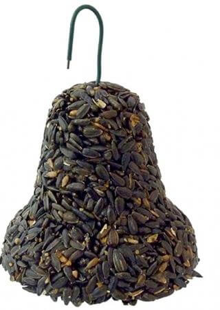W dokarmianiu istotna jest jednak regularność - jeśli już zaczęliśmy to robić, nie powinniśmy przestawać i dopuszczać do sytuacji, gdy karmnik jest pusty lub znajduje się w nim spleśniałe jedzenie. Ważne jest aby co kilka dni wymieniać wodę na świeżą i uzupełniać pokarm. Co jednak należy im podawać? W sklepach zoologicznych dostępne są odpowiednio skomponowane mieszanki zbóż i nasion, ale również dzwoni tłuszczowe, czyli nic innego jak tłuszcz zwierzęcy obtoczony w nasionach. Dzwonek słonecznikowy to wysokoenergetyczny posiłek dla sikorek i większych ptaków. Zawiera nasiona roślin oleistych, tłuszcz oraz ziarna zbóż. To wysokiej jakości karma idealna do dokarmiania ptaków w porze zimowej. Dzięki drucianemu uchwytowi można ją zawiesić na balkonie lub bezpośrednio w karmniku. 200 gramowa porcja wystarczy ptakom na kilka dni.