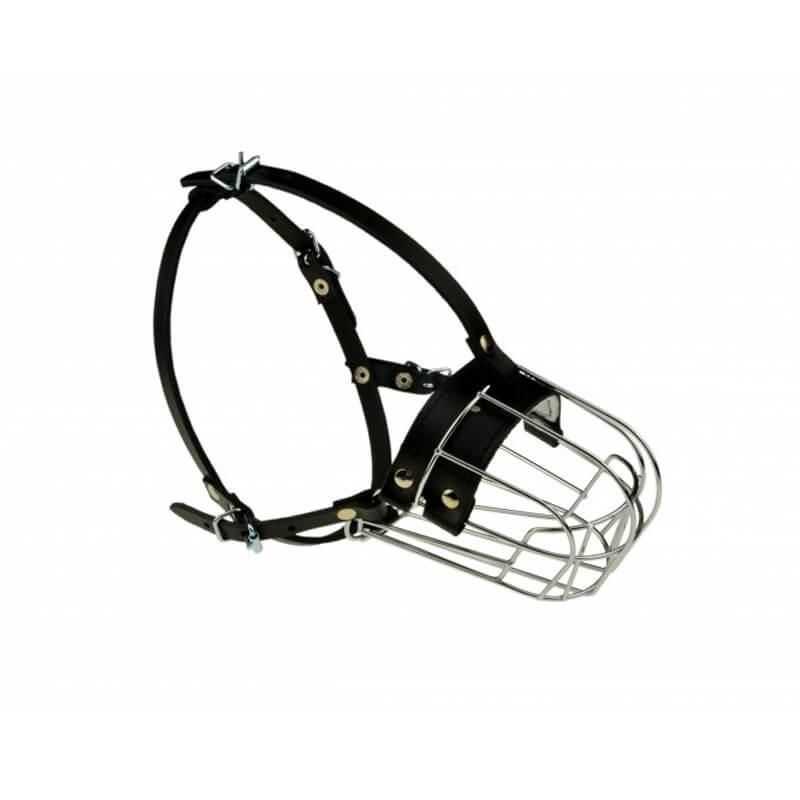 - Metalowy kaganiec, który zapobiega przed ugryzieniami oraz zjadaniem śmieci.