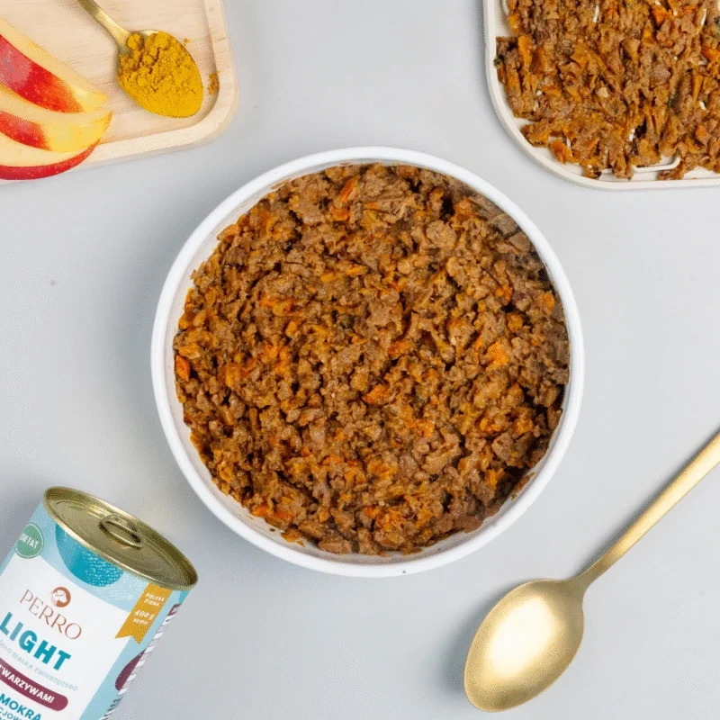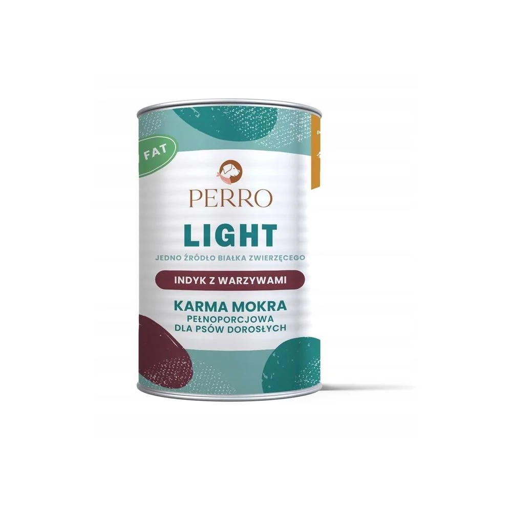 PERRO Light to karma mokra dla psa stworzona z myślą o zdrowiu i dobrym samopoczuciu pupila – lekkostrawna, pełnowartościowa i smaczna, zaspokajająca potrzeby najbardziej wymagających psów. Doskonała do codziennej diety lub jako uzupełnienie karmy suchej.