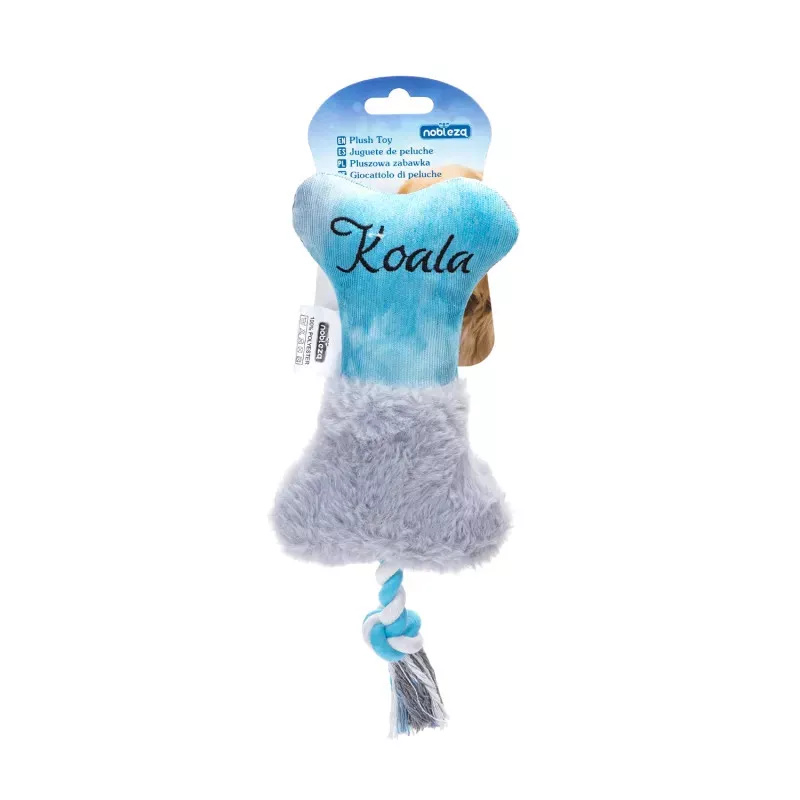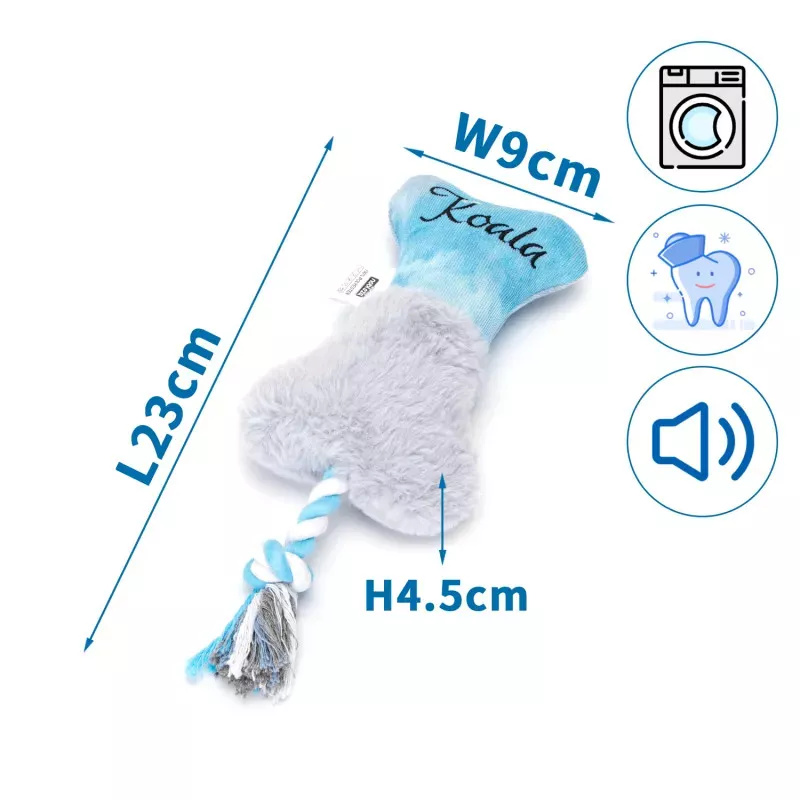 Piszcząca pluszowa kość z gryzakiem i sznurem