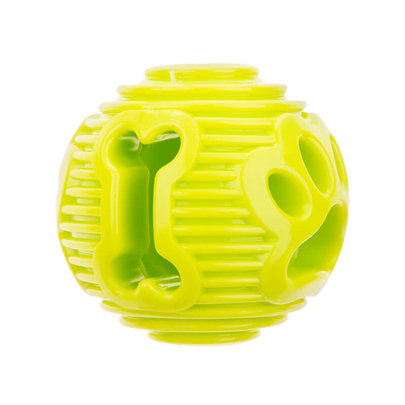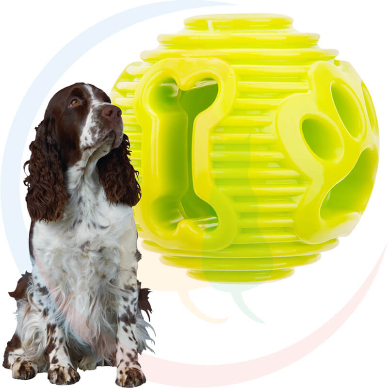 - Gumowa zabawka dla psów. Spełnia funkcję gryzaka, oczyszcza zęby z kamienia i zanieczyszczeń, umożliwia zamieszczenie smakołyków.