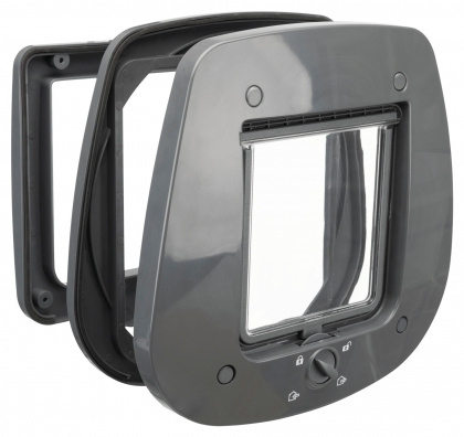 - Trixie Drzwiczki Wahadłowe 4-Funkcyjne przeznaczone do montowania w szklanych drzwiach.