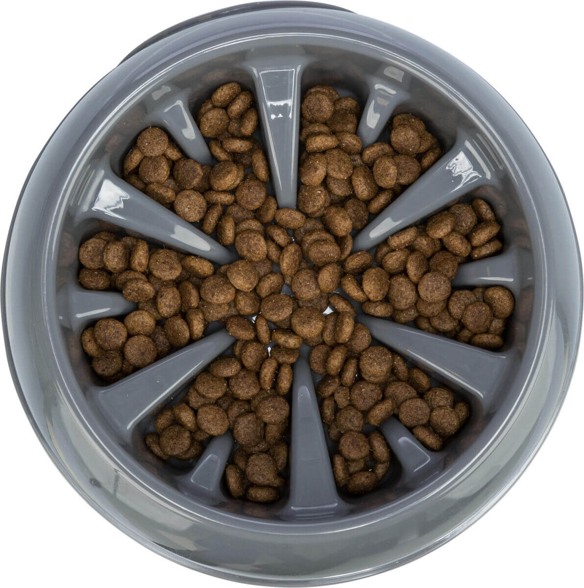 Łapczywe zjadanie pokarmu to niebezpieczna cecha, którą w trosce o zdrowie zwierzęcia należy jak najszybciej wyeliminować. Powietrze, które przedostaje się do psiego żołądka wraz z połykanym pokarmem, może prowadzić do rozwoju kolek, wzdęć, a nawet zagrażającemu życiu skrętowi żołądka. By temu zapobiec, musimy zadbać o to, by pies zjadał swoje posiłki spokojnie, przede wszystkim gryząc, dzięki czemu nie tylko zmniejszymy ryzyko zdrowotnych powikłań, ale także będziemy mieć pewność, że czworonóg się po prostu najada. W ostatnich latach znaczną popularność zyskały miski spowalniające jedzenie, nie tylko ze względu na swoją oczywistą funkcję. Pies jest zwierzęciem, które potrzebuje zmęczyć się nie tylko fizycznie, ale także umysłowo. Dzięki takiej misce zostanie on zmuszony do włożenia większego wysiłku intelektualnego w pozyskanie tak cennego pożywienia, dzięki czemu w efekcie końcowym pies rozładuje nagromadzone w nim napięcie. Miska spowalniająca jedzenie od Trixie została wykonana z bezpiecznego plastiku, a dzięki licznym wypustkom w znacznym stopniu utrudnia psu pobranie karmy, dzięki czemu wydłuża tempo zjadania posiłku. Dostępna jest w dwóch wariantach kolorystycznych. Można ją myć w zmywarce.