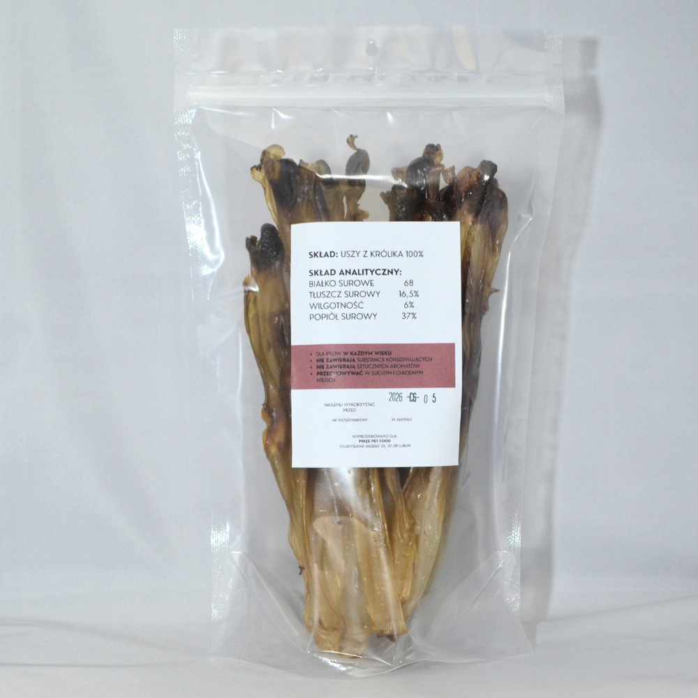 - Naturalne suszone uszy z królika to lekkostrawny gryzak idealny nawet dla wrażliwych psów. W 100% naturalny przysmak bez konserwantów, wspierający higienę zębów i zaspokajający potrzebę żucia.