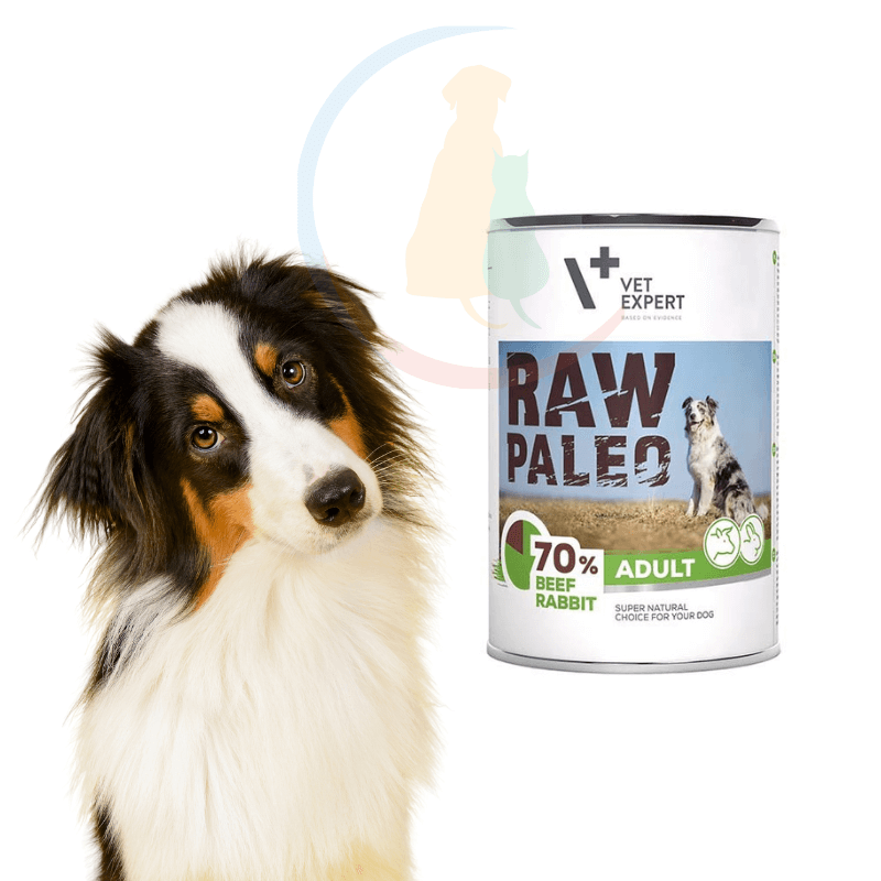 - Vetexpert Raw Paleo Adult to pełnoporcjowa, zbilansowana i bezzbożowa karma mokra dla psów dorosłych z wysoką zawartością mięsa w trzech przepysznych wariantach smakowych. Karma z wołowiną i królikiem.