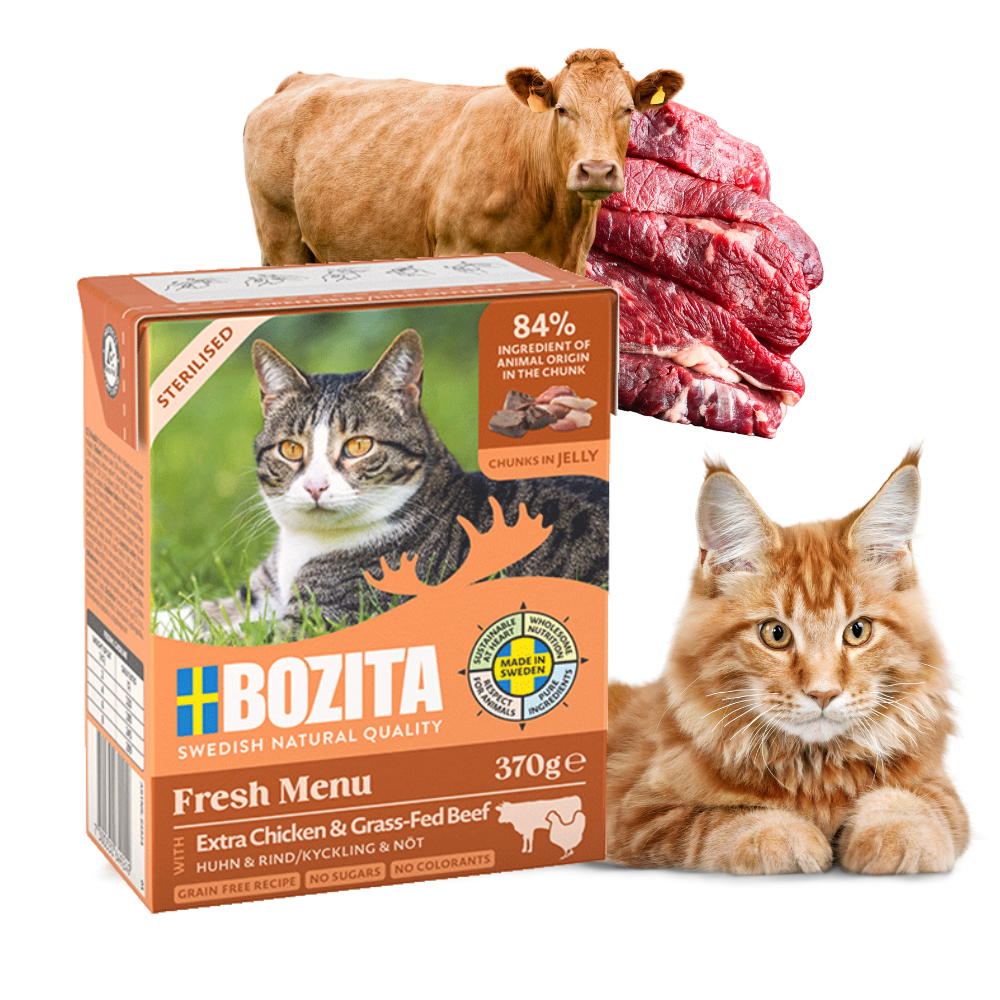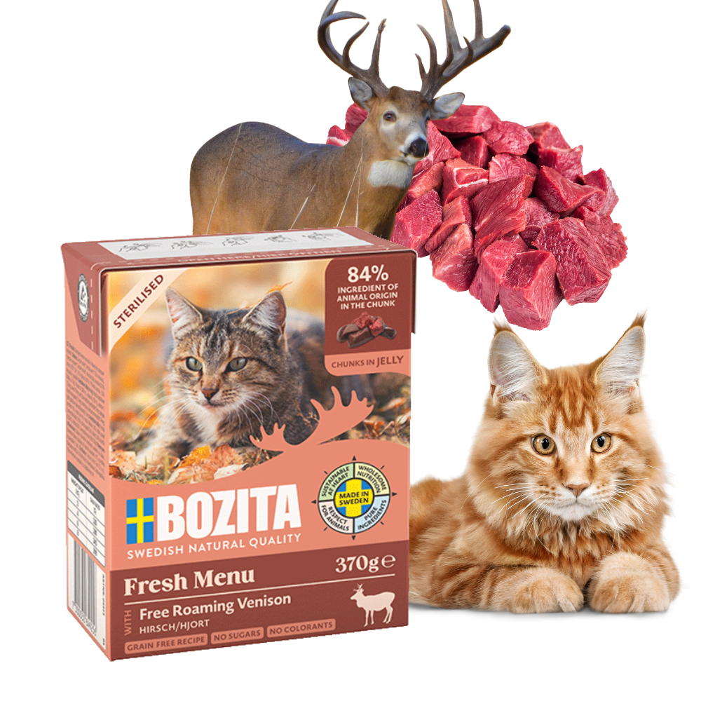 Bozita to szwedzka marka, która od ponad 100 lat stawia na naturalną jakość — surowce pochodzą głównie ze skandynawskiej przyrody i lokalnych gospodarstw, a produkcja odbywa się w certyfikowanej fabryce w Vårgårda zgodnie z najwyższymi standardami żywności i dbałością o dobro zwierząt oraz środowisko.