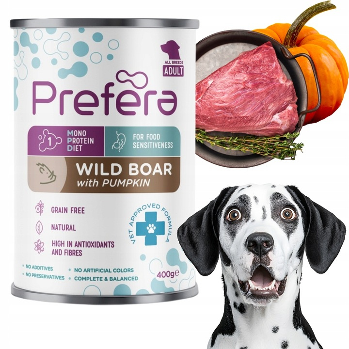 ZESTAW PREFERA Mono Adult Mokra Mokra Karma dla Psów Dzik z Dynią 6 x 400g