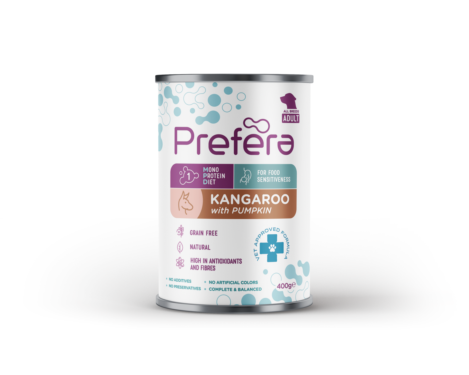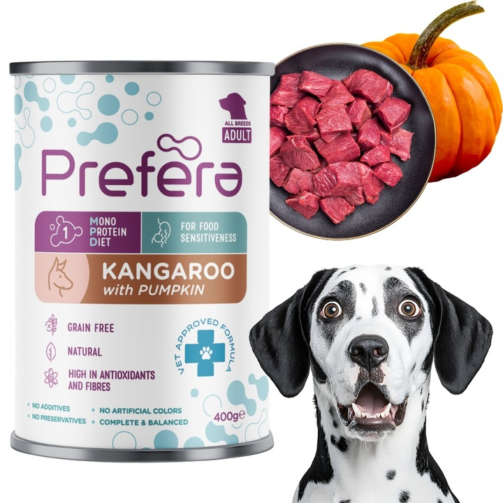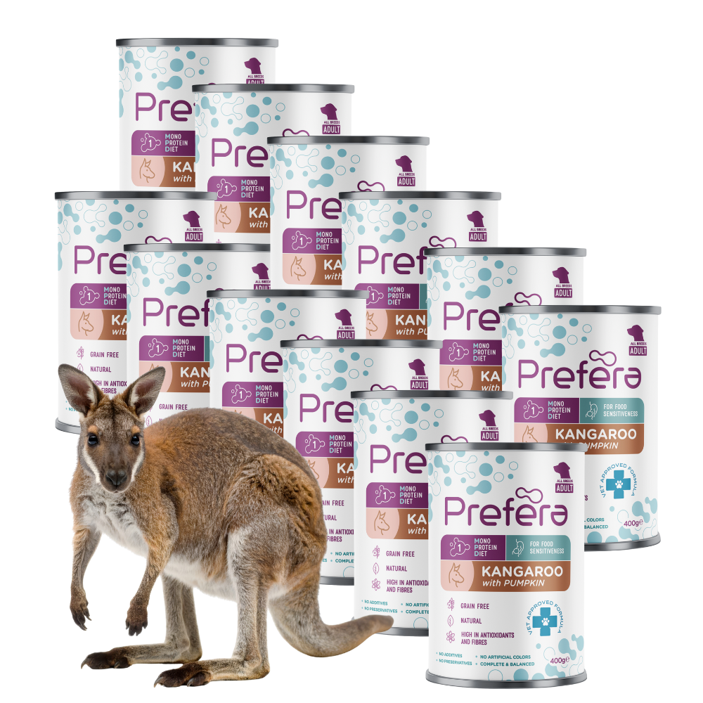 ZESTAW PREFERA Mono Adult Mokra Mokra Karma dla Psów Kangur z Dynią 12 x 400g